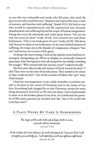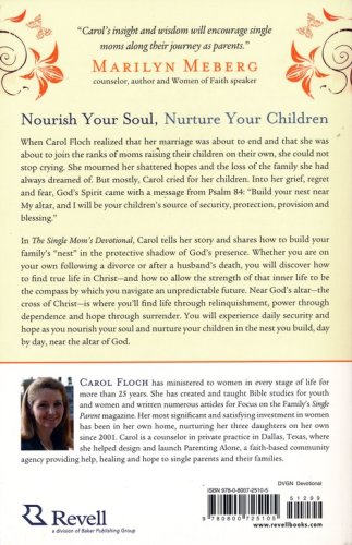 In The Single Mom's Devotional, Carol tells her story and shares with the sisterhood of single moms how they can build their family's nest in the protective shadow of God's presence. Single mothers, whether on their own after a divorce or a husband's death, will discover how to find true life in Christ and allow the strength of that inner life to be the compass by which they navigate an unpredictable future. Near God's altar, the cross of Christ is where single moms will discover life through relinquishment, power through dependence, and hope through surrender. Anchored at the foot of the cross, readers will find daily security and hope as they nourish their souls and nurture their children at a place near God's altar.
