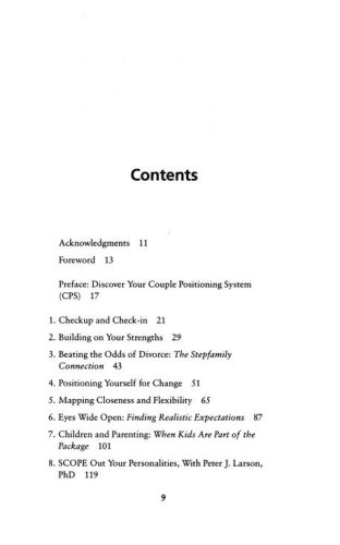 Each chapter of this book explores one of the key qualities of happy remarriages as identified by research. Like a GPS for your relationship, this book has built-in discussion questions that can help you and your partner discover where you are, where you'd like to be, and how to get there. The online survey gives you a report with personalized results for your relationship.