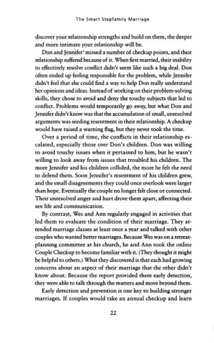 "Remarriages have unique challenges and different relational needs than first marriages. Based on a national study of 50,000 couples, this book is a wonderful resource for remarriage couples. Take the online Couple Checkup and get a report about your relationship, read the book, and build a relationship that lasts!"–Dr. Gary Smalley, author of The DNA of Relationships