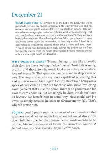 Journey through the Psalms with Pastor Keller and hear the voice of Christ along the way! Offering a year's worth of daily meditations, this encouraging collection features excerpts from Keller's best-selling books, recommended readings for deeper study, fresh biblical insights, and more. A thoughtful gift for friends and loved ones! 372 pages, brown imitation leather from Viking.