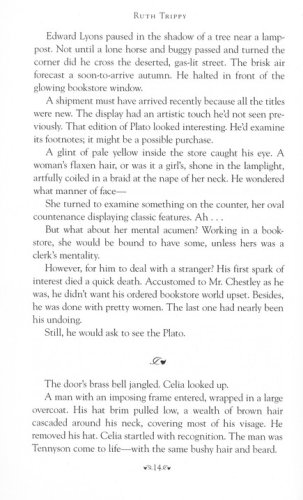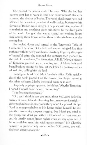 After the tragic death of her closest friend, 20-year-old Celia Thatcher is sent to work in the bookstore of family friends. Hoping the new surroundings in Massachusetts will help her regain a happy outlook on life, Celia catches the eye of not one, but two men: the elite, but unkempt Bostonian-turned-hermit, Edward Lyons, who is clearly trying to run from his past and from God, and Charles Harrod, a charming Harvard law student who promotes a religious belief Celia has never before considered. With both men vying for her attention, Celia’s world is again turned upside down when one of her beaus is accused of murder. Suddenly realizing where her heart lies, Celia is now challenged with a choice bigger than man: should she follow her heart or her God?