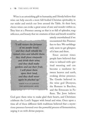 Wine is a wonderful, lavish, and mysterious gift from God. Gisela Kreglinger, the daughter of a vintner and trained as a theologian, invites us to discover wine as part of a more full-bodied Christian spirituality. She shows us how the soulful savoring of wine is God's way of wooing us back into a great love affair. Indeed, Jesus' first miracle was turning water into wine at a wedding. Along with bread, wine is the gift we receive at the table of communion. Through these gifts we experience God's glorious and loving presence among us, feeding and nurturing us in body, soul, and spirit. Wine was never meant just for a small and elite group of well-to-do people but is for us all. Wine can reenchant the world and help us fall in love with it all over again. Come and savor its goodness. A wine tasting and book discussion guide is also included.