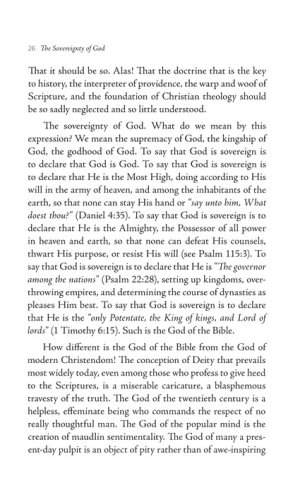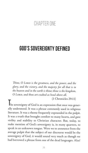 In this unabridged, best-selling classic, A. W. Pink tackles such profound questions in straight-forward language that the average Christian will find not only understandable but totally engaging. Pink explains that God's sovereignty is characterized in creation and in salvation, and then he describes its relationship to human will. Finally, Pink addresses the proper attitude believers should take toward God's sovereignty. Ultimately, Pink strongly believed that true faith rests "not in the wisdom of men but in the power of God."
