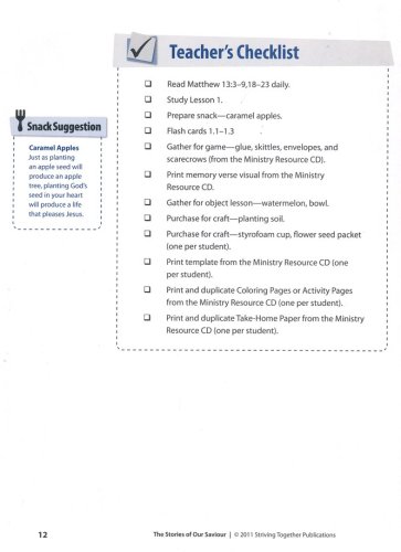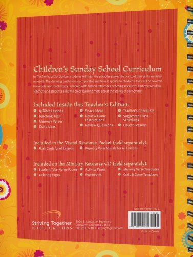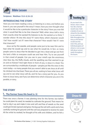 This curriculum series for elementary-age children, The Stories of Our Saviour, ocuses on thirteen parables told by Jesus during His earthly ministry. The defining truth from each parable and how it applies to children's lives will be covered in every lesson. Lessons are supplemented with biblical references, teaching resources, and creative ideas. Included inside this Teacher's Edition: