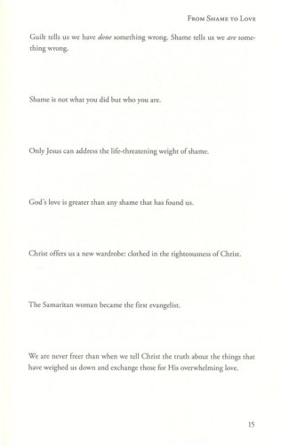 Heartbreak to Strength (Hannah)Disappointment to Hope (Woman with Issue of Blood)Fear to Joy (Mary Magdalene)Shame to Love (Samaritan Woman)Regret to Rest (Rahab)Insecurity to Family (Ruth)Insignificance to Courage (Esther)Despair to Faith (Sarah)