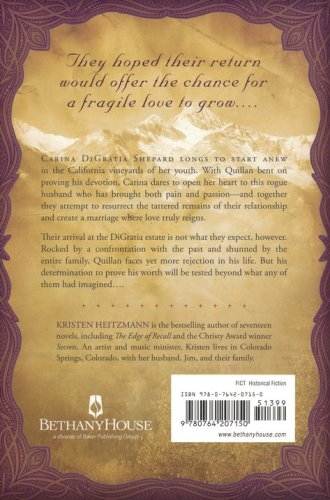 Aching from the recent loss of a constant companion, Carina DiGratia Shephard longs to return to the shelter of her close-knit family. Her husband, Quillan, is bent on proving his devotion, and they begin the arduous journey to the home of her youth nestled in the vineyards of Sonoma, California. But their arrival at the DiGratia estate is not the joyous occasion they expected. Will a confrontation