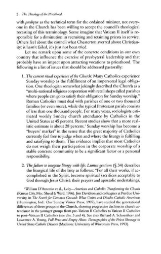 Stephen DeLeers articulates a theology of priesthood grounded in Vatican II and post-Vatican II documents which focuses on the primacy of preaching. Thomas Rausch, SJ, then takes up the issue of diversity within ministerial priesthood as he reflects on priesthood within the context of apostolic religious life. Jack Risley, OP, returns to the question of the relationship between ordained ministry and lay ministry.