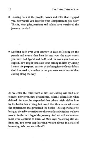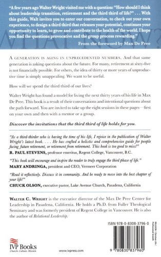 Considering retirement can be daunting. How do you know how to best plan for the future? Now there's a helpful guidebook to lead you thoughtfully into the third third of life. In this brief workbook Walter C. Wright provides eight sessions to help those moving toward retirement plan out their next steps. Developed and field-tested at the Max De Pree Center for Leadership, this guide includes material for individuals and groups that will enable 50-somethings (and up) to prepare for the next chapter of life with confidence.