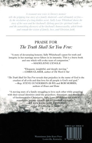 A riveting new voice in literary memoir tells the gripping true story of a family shattered–and ultimately set free–by the revelation of a long-hidden secret. Sally Lowe Whitehead shares the deeply personal story of her own and her husband's lifelong quest for spiritual truth–and her astonishing discovery of her husband's homosexuality, which initially broke and then remade her vision of family, love, and Christian faith.