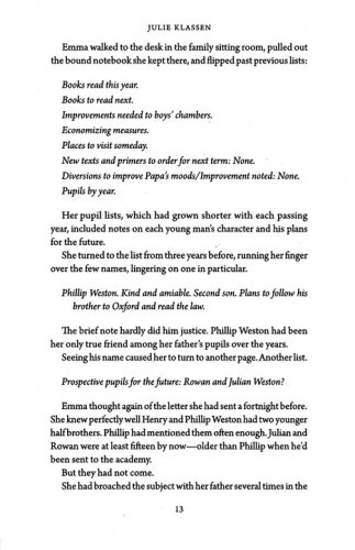 The baronet's older sons, Phillip and Henry, wrestle with problems–and secrets–of their own. They both remember Emma Smallwood from their days at her father's academy. She had been an awkward, studious girl. But now one of them finds himself unexpectedly drawn to her.