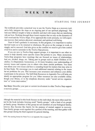 This updated edition of The Twelve Steps: A Spiritual Journey is the ideal workbook for adults who seek God’s grace and healing from the injuries and pain resulting from life events and experiences. It combines the 12 steps with biblical principles, and begins the process for one’s journey toward lasting change and renewal. Frequently used in weekly group meetings. 2012 edition; 259 pages.