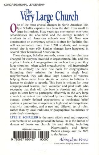 One of the most crucial changes in North American life, Lyle E. Schaller explains, has been the shift from small to large institutions. Sixty years ago one-teacher, one-room schoolhouses still abounded, and the average number of students in all American schools was one hundred. Now new construction on elementary schools is often for facilities that will accommodate more than twelve hundred students, and average school size is over six hundred. Similar changes have happened in several other branches of American life. These changes, Schaller contends, mean that the rules have changed for everyone involved in organizational life. Very large churches—megachurches—will increasingly come to embody the new rule-book for congregations. Extending their mission far beyond a single local neighborhood, they will draw large numbers of visitors, helping them move progressively from skeptics or seekers to believers to learners to disciples to apostles. The Very Large Church was written for those congregational leaders, both volunteer and paid staff, who recognize that their old rule-book is obsolete and who are eager to learn how to participate effectively in the very large church in a context that is defined by the culture, the societal context, clearly defined expectations, a theological belief system, a passion for evangelism, a high level of competence, creativity, innovation, and a new and different set of rules, rather than by local traditions, geographical boundaries, or yesterday’s stereotypes. Key Features: • Focuses on issues in organization life—Schaller’s strong suit • Addresses a tendency that is growing today Key Benefits: • Places the shift to large churches within the context of a cultural shift from small to large institutions • Demonstrates how and why the old rule-book for organizational structure must change • Helps church leaders understand how to make the transition to the megachurch culture while retaining Christian integrity