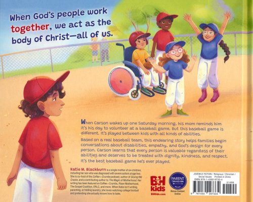 When Carson wakes up one Saturday morning, his mom reminds him it’s his day to volunteer at a baseball game. But this baseball game is different. The team Carson is helping is called the Challengers, and it’s made up of kids with all different kinds of disabilities. Carson and other typically-abled kids partner with the Challengers to help them play the game. Throughout the morning, Carson learns about selflessness, humility, kindness, and God's plan to use all of us exactly how He made us.