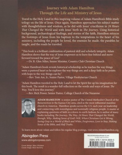 Travel with Adam Hamilton as he retraces the life and ministry of Jesus Christ. Once again, Hamilton approaches his subject matter with thoughtfulness and wisdom, just as he did with Jesus’ crucifixion in 24 Hours That Changed the World and with Jesus’ birth in The Journey. Read The Way on your own or, for a more in-depth study, enjoy it with a small group or part of a 40-day church-wide emphasis during Lent and Easter or anytime of the year. Using historical information, archaeological data, and stories of the faith, Hamilton follows in the footsteps of Jesus from his baptism to the temptations to the heart of his ministry, including the people he loved, the parables he taught, the enemies he made, and the healing he brought. This 40-day focus will help you and your group grow deeper in their faith, learn more about the life of Christ, spend time daily reading and reflecting upon the Scriptures, and invite families, through the children’s and youth studies, to grow together in their faith. This new large print edition includes devotions for each chapter and photos from Adam's trip to the Holy Lands. Additional resources include a DVD, devotional, youth and children editions, and a worship download to help with sermon planning.