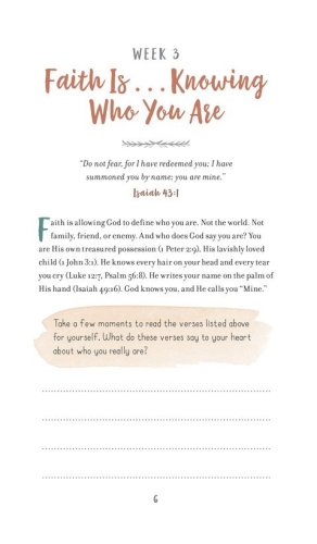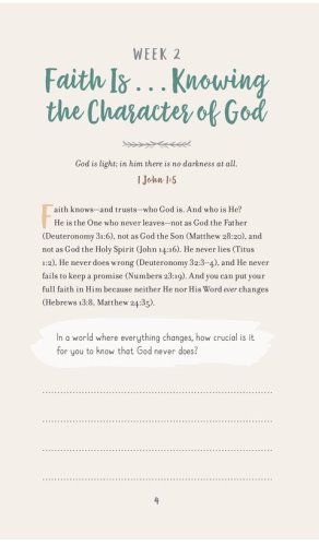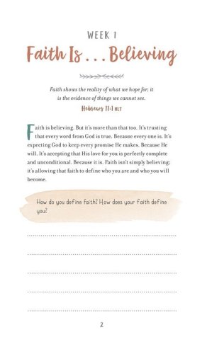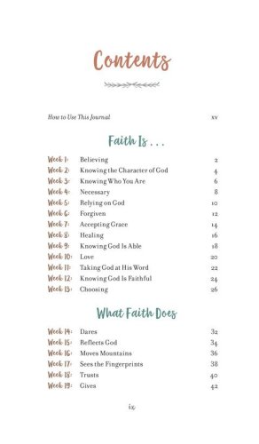 Perfect for a beginner in faith, but strong and thought provoking enough for someone who already has a solid foundationA heartfelt journaling format designed to help you focus on adding more faith into your dayAn uplifting addition to individual worship, Bible studies, and small groups