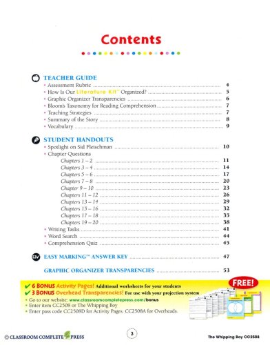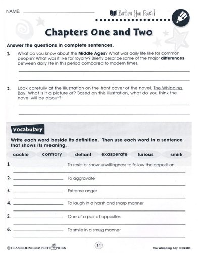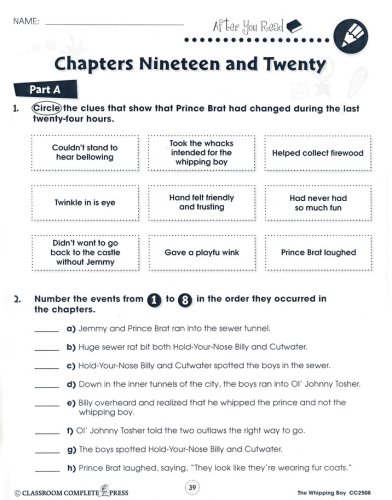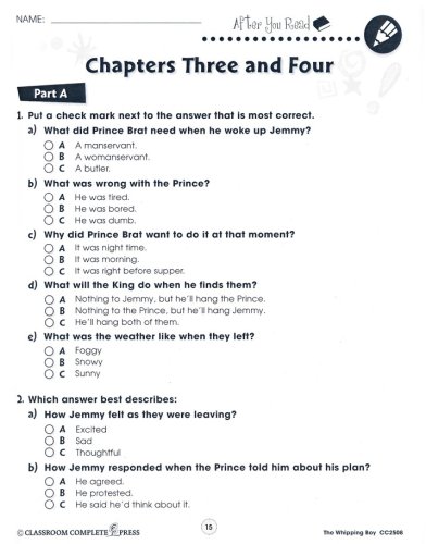 Please Note: the book The Whipping Boy by Sid Fleischman is requi red and not included with this study guide.