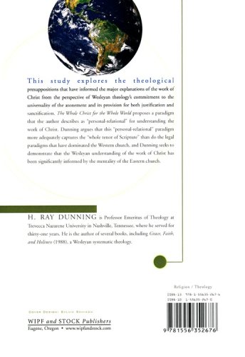 This study explores the theological presuppositions that have informed the major explanations of the work of Christ from the perspective of Wesleyan theology's commitment to the universality of the atonement and its provision for both justification and sanctification. The Whole Christ for the Whole World proposes a paradigm that the author describes as "personal-relational" for understanding the work of Christ. Dunning argues that this "personal-relational" paradigm more adequately captures the "whole tenor of Scripture" than do the legal paradigms that have dominated the Western church, and Dunning seeks to demonstrate that the Wesleyan understanding of the work of Christ has been significantly informed by the mentality of the Eastern church.