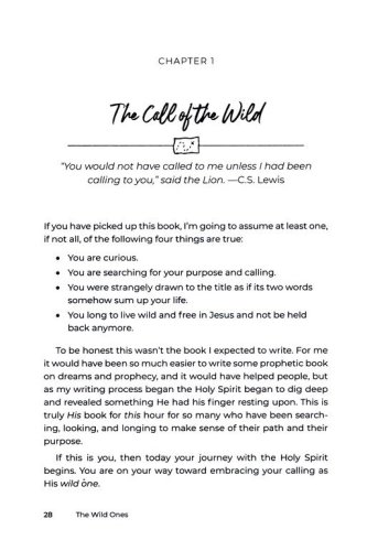 In The Wild Ones, you will receive: Purpose for your wilderness season.Direction for your unique, God-given gifts.Healing from the pain of past rejection.Encouragement to speak truth in the midst of chaos.Empowerment to release supernatural solutions in your sphere of influence.