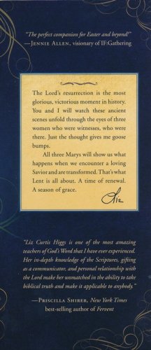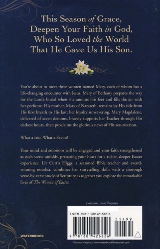 With unforgettable insights and powerful life application for today's women, Liz Curtis Higgs delves into the biblical text to help us view Easter through the eyes of three women named Mary, each of whom has a life-changing encounter with Jesus: Mary of Bethany, who prepares the way for the Lord’s burial when she anoints His feet and fills the air with her perfume; Mary of Nazareth, who remains by His side from His first breath to His last, her loyalty unwavering; and Mary Magdalene, delivered of seven demons, who bravely supports her Teacher through His darkest hours, then proclaims the glorious news of His resurrection