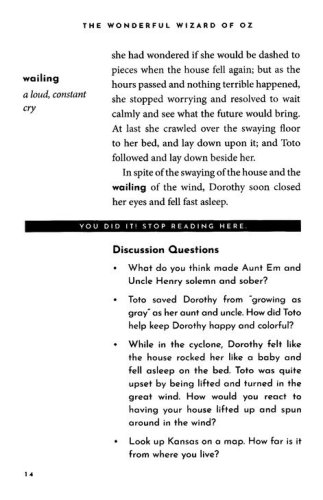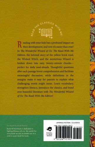 In The Wonderful Wizard of Oz: The Read-With-Me Edition, the unabridged text of the beloved story of the yellow brick road, the shoes, and the wizard is broken down into easy, twenty-minute chunks—perfect for daily read-alouds. Thoughtful questions after each passage boost comprehension and facilitate meaningful discussion, while definitions in the margins make it easy for parents to explain what challenging words might mean. Learn vocabulary, strengthen literacy, introduce the classics, and bond over beautiful literature in just 20 minutes a day!