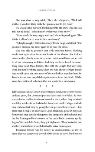 Discover Cabrini’s mystical vocation, her encounters with the miraculous, and her tireless devotion to the Eucharistic Heart of Jesus. Be inspired by her resourcefulness in overcoming financial obstacles, her skills of diplomacy in touching the hearts of influencers, and her ability to transcend boundaries to succor the helpless worldwide. Uncover the depth of her humanness, her humor, and her profound concern for the sisters in her congregation, whom she spiritually nurtured throughout their lives.