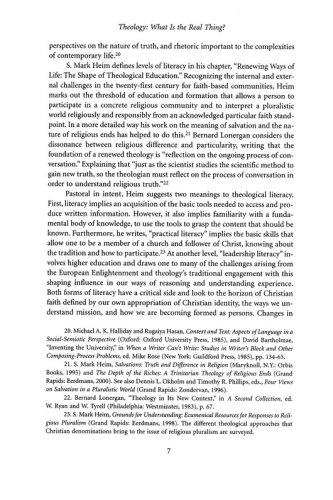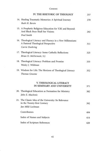 This volume presents a compendium of different perspectives by leading theological educators on what constitutes theological literacy in the twenty-first century. Structured around the key emphases that have shaped a traditional curriculum in theological education, these insightful essays explore the nature of theology, theology and institutional expression, the practice of hermeneutics in today's context, the rhetoric of theology, and the future of theological education. Throughout their essays, the contributors specifically address or draw from a wide range of confessional stances, making this book valuable to readers from every church tradition.