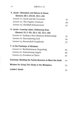 Chapter 1. Abraham: Journey from Haran to EgyptChapter 2. Abraham: Faithful in CanaanChapter 3. Abraham: Doing Business in CanaanChapter 4. Isaac: Maintaining the Family BusinessChapter 5. Jacob: Alienation and Return to HaranChapter 6. Jacob: Separating from Laban and Reconciling with EsauChapter 7. Summary: Building the Family Business to Bless the Earth