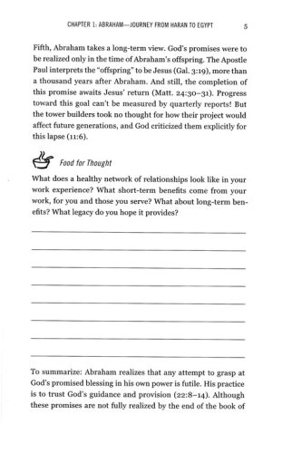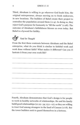 This Bible study of Genesis 12-33 is a part of The Bible and Your Work Study Series. It contains Scripture references, thought-provoking questions, and prayers to help you explore what the Bible says about work and apply it to your life in positive, practical ways. The lessons in each chapter are designed for thirty-minute lunch breaks, although they can be used in other formats as well.