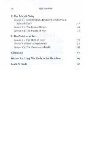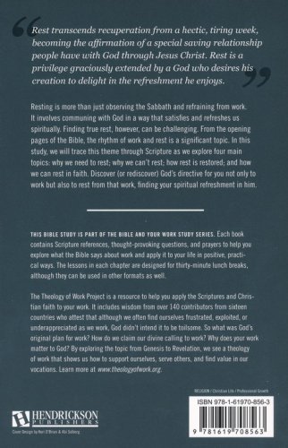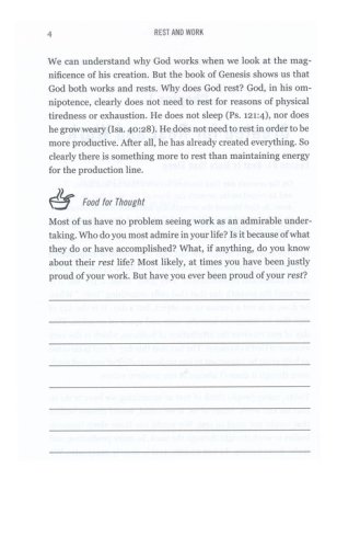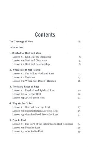 Resting is more than just observing the Sabbath and refraining from work. It involves communing with God in a way that satisfies and refreshes us spiritually. In the Bible, the rhythm of work and rest is an important topic. This study traces this theme through Scripture and explores four main topics: why we need to rest; why we can't rest; how rest is restored; and how we can rest in faith.