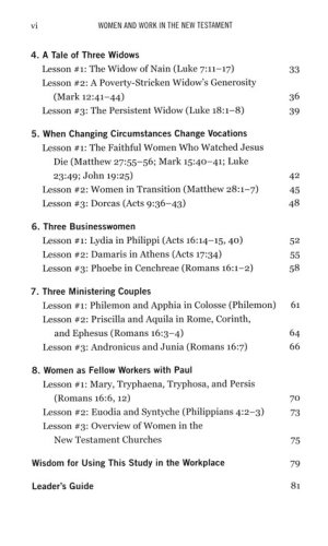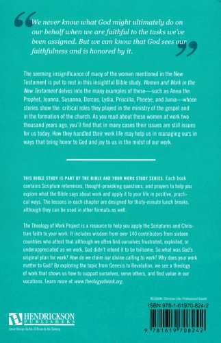 The seeming insignificance of many of the women mentioned in the New Testament is put to rest in this insightful Bible study, which delves into the many examples of those-such as Anna, Joanna, Susanna, Dorcas, Lydia, Priscilla, Phoebe, and Junia-whose stories show the critical roles they played in helping Jesus in his ministry and in the formation of the church. As you read about these women at work two thousand years ago, you'll find that in many cases their issues are still issues for us today. How they handled their work life may help us manage ours in ways that bring honor to God and joy to us in the midst of our work.