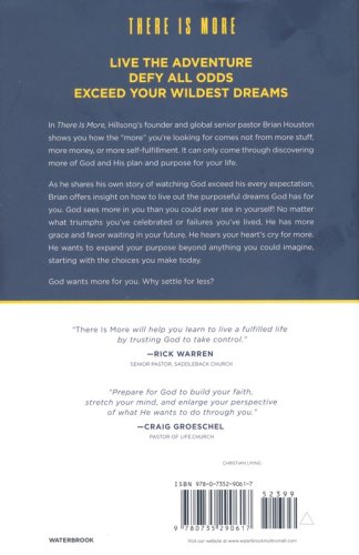 By building our lives around godly principles, surrounding ourselves with wisdom, and living for a cause greater than ourselves, we can effectively live out God's purposes and have an enduring impact. As Brian Houston has personally discovered, when we depend on Jesus as the source for our identity, our lives can be a lasting legacy that maximize the gifts He has given each of us as unique individuals. There is More is for anyone who wants to be challenged to live with expectancy. Ephesians 3 is a call to release the immeasurable potential within you and the exceeding, abundant, and above plans and purposes of a Holy God that are beyond your greatest imagination. "Now to Him who is able to do exceedingly abundantly above all that we ask or think, according to the power that works in us, to Him be glory in the church by Christ Jesus to all generations, forever and ever. Amen" (Ephesians 3:20-21).