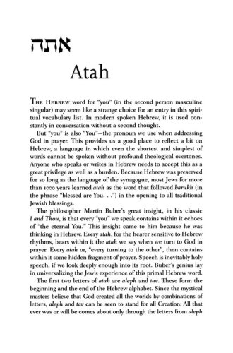 "This book attempts to explain some of the most essential ideas, concepts, and terms that form a basic vocabulary of Judaism and Jewish identity. In readable, entertaining prose, Green imparts the meanings, history, and origin of 149 core Hebrew words, organized into eight sections,"—Library Journal. 290 pages, softcover. Jewish Lights.