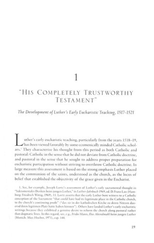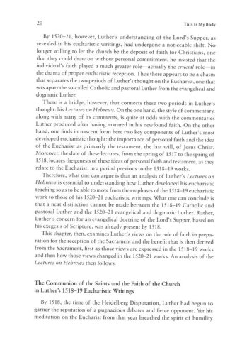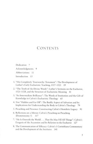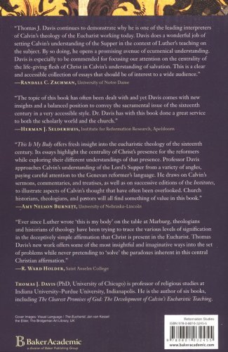 This volume by Thomas Davis fills these gaps with a more narrowly focused study. He devotes several chapters to Luther and to Calvin, examining their use of language and their understanding of the presence of Christ, both in the Lord's Supper and in the broader sense of his presence in the church.