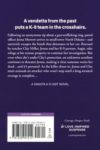 Following an anonymous tip about a gun-trafficking ring, patrol officer Jenna Morrow arrives in small-town North Dakota–and narrowly escapes the bomb that detonates in her car. Rescued by rancher Clay Miller, Jenna and her K-9 partner, Augie, take refuge at his remote property to continue her investigation. But even when she's under Clay's protection, an unknown assailant continues to threaten Jenna, making it clear someone wants her dead…and it's personal. As the killer closes in, Jenna and Clay must unmask an attacker who won't stop until a long-awaited revenge is complete…