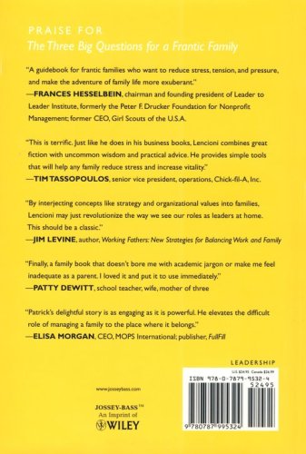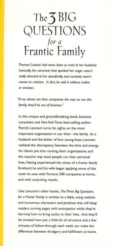 Review Three Big Questions for a Frantic Family: A Leadership Fable about Restoring Sanity to the Most Important Organization in Your Life.