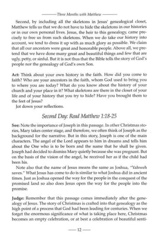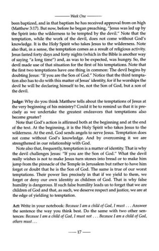 Translated by the author, this week-by-week study offers a profound message for readers in simple, easy-to-understand language. Includes 13 detailed Bible studies with daily readings. The study is divided into three sections: See (observations), Judge (historical context), Act (reflection). Journaling is encouraged and a small group study section appears at the end of each week. These Bible studies can be used for Sunday school, for evening Bible study, for home study meetings, for faith communities, for retreats, and for personal Bible study. This book can even be used as a daily Bible study, as each lesson is divided into seven parts. To see another group study offered by Cokesbury, go to the Adult Bible Studies website.