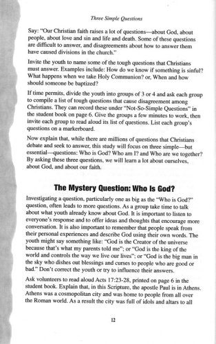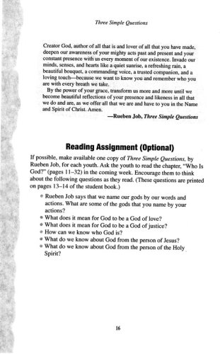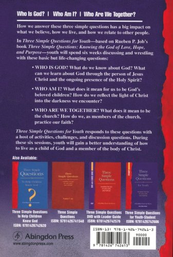 Rueben P. Job, author of Three Simple Rules, brings us a new insight on how to live a Christ-like life and explores the three most basic and profound questions at the center of our faith—questions that all major religions try to answer and around which there seems to be much confusion: Who Is God? Who Am I? Who Are We Together? How we answer these three simple questions has a big impact on what we believe, how we live, and how we relate to other people. In Three Simple Questions, Youth Edition—based on Rueben P. Job’s book Three Simple Questions: Knowing the God of Love, Hope, and Purpose—youth will spend six weeks discussing and wrestling with these basic but life-changing questions • Who is God?: What do we know about God? What can we learn about God through the person of Jesus Christ and the ongoing presence of the Holy Spirit? • Who am I?: What does it mean for us to be God’s beloved children? How do we reflect the light of Christ into the darkness we encounter? • Who are we together?: What does it mean to be the church? How do we, as members of the church, practice our faith? Three Simple Questions, Youth Edition responds to these questions with a host of activities, challenges, and discussion questions. During these six sessions, youth will gain a better understanding of how to live as a child of God and a member of the body of Christ.