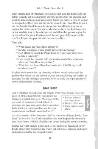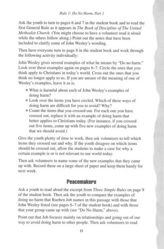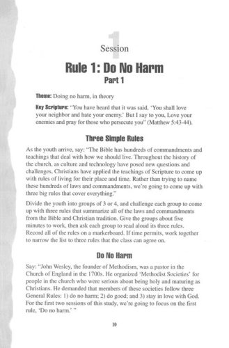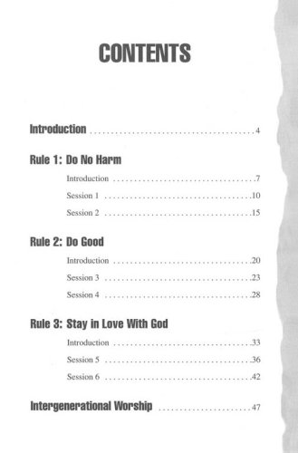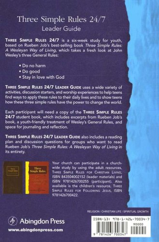 The leader guide includes Scripture and excerpts from Wesley’s writings and Rueben P. Job’s original book Three Simple Rules. The guide provides commentary and gives youth ministers and study leaders detailed plans for each of the six sessions, discussion questions, activities, and worship ideas.