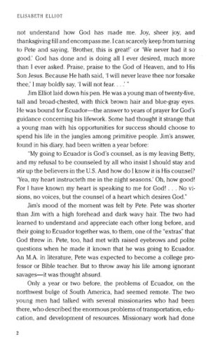 The unforgettable true story of five men who braved Auca lances. This edition includes a follow-up chapter that will give readers a unique perspective.