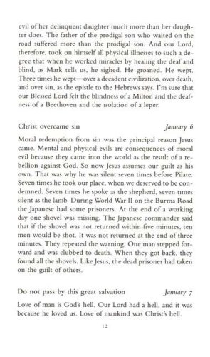 This book is Sheen at his best–the master storyteller, preacher, and faithful servant of Christ–with a word of encouragement, counsel, and direction for each day of the year. With characteristic insight and eloquence, he penetrates to the heart of the Christian life with practical reflections on love, holiness, spiritual power, miracles, and Christ-like living. These daily selection will provide you with a fresh perspective on what it means to be a follower of Christ, on the challenge of serving God and the blessings of living a grace-filled life.