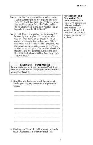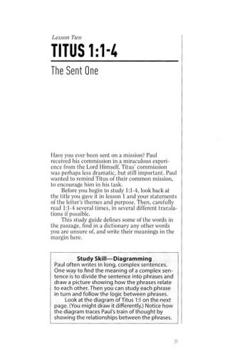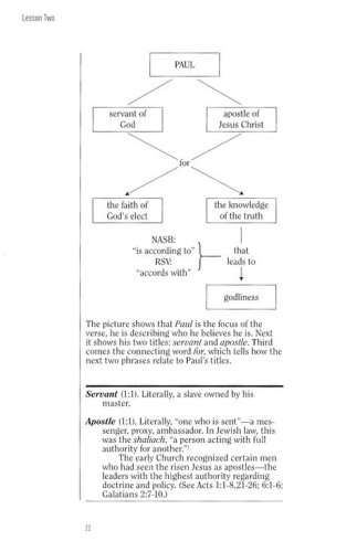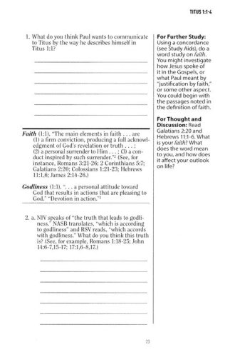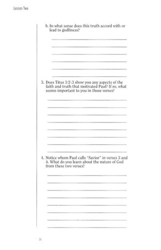 FeaturesCover the entire book of Titus in 8 lessonsEquip yourself to lead a Bible studyImagine the Bible’s historical worldStudy word origins and definitionsExplore thoughtful questions on key themesGo deeper with optional projectsAdd your notes with extra space and wide marginsFind the flexibility to fit the time you have