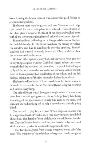 It has been six years since army nurse Jenny Bennett's heart was broken by a dashing naval officer. Now Lieutenant Ryan Gallagher has abruptly reappeared in her life at the Presidio army base but refuses to discuss the inexplicable behavior that destroyed their happiness.
