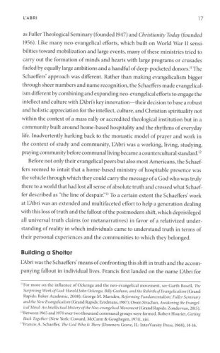 In the late 1960s and on into the next decade, the American pastor and bestselling author Francis Schaeffer regularly received requests from evangelicals across North America seeking his help to replicate his innovative learning community, L'Abri, within their own contexts.