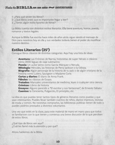 The Bible is the most powerful tool for the spiritual formation of the new generations and this material helps teachers and university student leaders to teach it in an orderly manner from Genesis to Revelation in 50 creative and unforgettable classes. Includes worksheets and online activities.