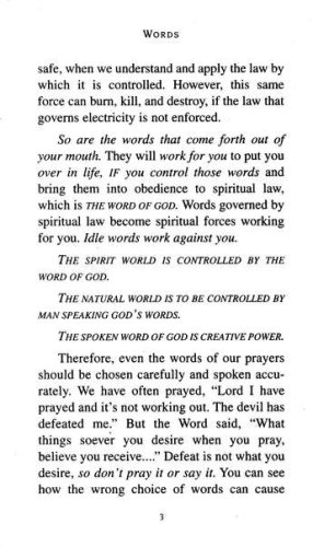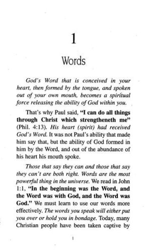 Words are the most powerful things in the universe! The words you speak will either put you over in life or hold you in bondage, and the absence of God's Word in your life will rob you of faith in His ability. Put yourself in a position to receive God's best for you by speaking His Word. God's creative power is still just as it was in the beginning of time when He stood there and said, "Light—be," and light was. His Word spoken from your mouth and conceived in your heart becomes a spiritual force releasing His ability within you. Learn to speak His faith-filled words to your situation and see your life transformed!