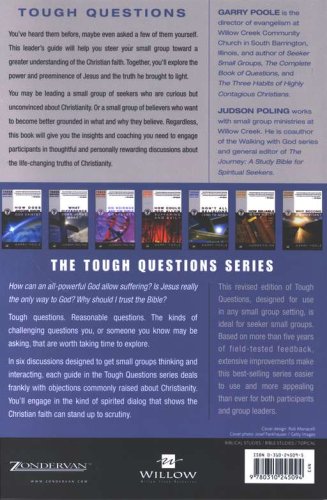 This revised edition of Tough Questions, designed for use in any small group setting, is ideal for use in seeker small groups. Based on more than five years of field-tested feedback, extensive improvements make this best-selling series easier to use and more appealing than ever for both participants and group leaders. The Tough Questions SeriesHow can an all-powerful God allow suffering? Is Jesus really the only way to God? Why should I trust the Bible?Tough questions. Reasonable questions. The kinds of challenging questions you, or someone you know may be asking, that are worth taking time to explore.In six sessions designed to get small groups thinking and interacting, each guide in the Tough Questions series deals frankly with objections commonly raised about Christianity. You’ll engage in the kind of spirited dialog that shows the Christian faith can stand up to scrutiny. TOUGH QUESTIONSYou’ve heard them before, maybe even asked a few of them yourself. This leader’s guide will help you steer your small group toward a greater understanding of the Christian faith. Together, you’ll explore the power and preeminence of Jesus and the truth he brought to light.You may be leading a small group of seekers who are curious but unconvinced about Christianity. Or a small group of believers who want to become better grounded in what and why they believe. Regardless, this book will give you insights and coaching you need to engage participants in thoughtful and personally rewarding discussions about the life-changing truths of Christianity.