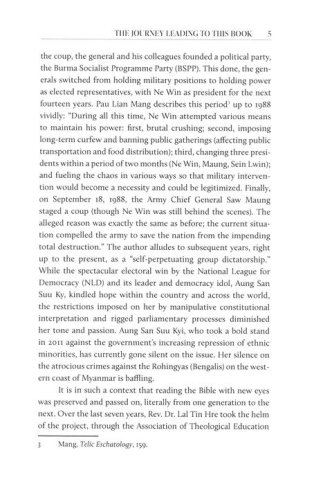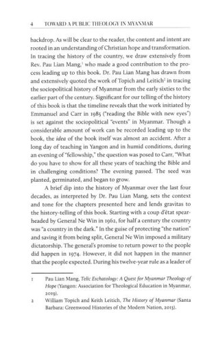 The essays in this volume reflect the journey of a team from Myanmar and India listening and learning from each other. The intention is for theologians, pastors, and public intellectuals from Southeast Asia, starting from the Association of Theological Education in South East Asia (ATESEA), to initiate or strengthen discussions on the theme of Public Witness. In situations where the discussion has begun, we hope this contribution will add to the process. At a fundamental level, this volume will trigger a rethinking of Mission in Myanmar in the context of re-imposed military rule.