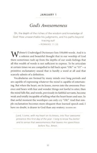 Spend a year dwelling on the awesomeness of God with A.W. Tozer. Tozer was a man who walked closely with God, who prayed often and shunned distraction so he could gaze more purely upon his Creator. In these daily meditations on Scripture, Tozer urges you to do the same. He will stir you toward humility and full surrender. He will expand your faith in a God so great that words fall short to describe Him. He will nourish you with truth.