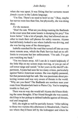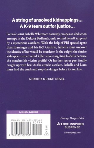 A string of unsolved kidnappings_A K-9 team out for justice_Forensic artist Isabella Whitmore narrowly escapes an abduction attempt in the Dakota Badlands, only to find herself targeted by a mysterious assailant. With the help of FBI special agent Liam Barringer and his K-9, Guthrie, Isabella must uncover the identity of her would-be murderer. Is the culprit the elusive kidnapper turned serial killer who's targeting Isabella because she matches his victim profile? Or has her secret past finally caught up with her? As the attacks escalate, Isabella and Liam must find the truth and stop the danger before it's too late.