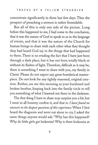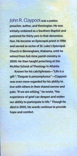 This is the story of Claypool's own journey through the darkness, written through four sermons. The first was delivered just eleven days after his daughter's diagnosis of leukemia, the second after her first major relapse nine months later, and the third weeks after her death. The final sermon—a reflection on the process of grieving—was preached three years later.